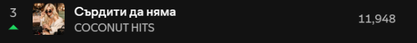 преди 7 часа , Administrator каза:Топ 20 — моментна снимкаТова е списък с водещите позиции. Колоната “Промяна” показва движението спрямо предишната класация.# Песен Гледания Промяна Дни 1 420 272 ⏺ 0 4 2 103 907 ⏺ 0 16 3 84 421 ⏺ 0 10 4 70 264 ⬆️ +1 17 5 67 170 ⬇️ -1 30 6 63 653 ⏺ 0 11 7 55 878 ⏺ 0 184 8 54 798 ⏺ 0 63 9 45 017 ⏺ 0 6 10 44 990 ⬆️ +1 182 11 41 705 ⬇️ -1 18 12 41 521 ⏺ 0 150 13 38 775 ⬆️ +1 291 14 37 483 ⬆️ +2 14 15 37 058 ⬇️ -2 54 16 Vanesa, Danna – ЛОРО ПИАНАYouTube • 🆕 Ново35 348 🆕 Ново 1 17 34 534 ⬇️ -2 73 18 34 485 ⬇️ -1 219 19 30 924 ⬇️ -1 167 20 28 083 ⏺ 0 137 Меди под Гюр, Леля Данче, Леля Мара младо да побара и стрина Еклерени. 😭