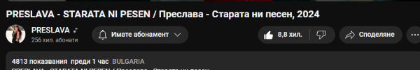 Преслава мачка, над 11К лайка за 90 минути. Гледанията са забили жестоко на 5К. Сигурно реалните са почти 100К. Надушвам рекорд? Това ще е МЕГА ХИТ!2 точки