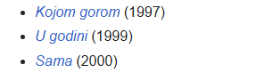 10. Драгойка има три албума в този период Даже май клиповете от този от 2000-ната бяха снимани в ЮАР. Този хит на Азия е именно оттам: https://www.youtube.com/watch?v=z3f9P3b7LdA Преди Драгойка да стане №1, е била Лепа Брена, която освен през 80-те, и през 90-те е много силна фигура в тамошната музика. @WindWalkerMonk