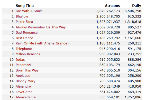 Без Die with a smile албума на Гага има само 1,4B стриймове, от които и 550М са на Абракадабра. 🫠 -