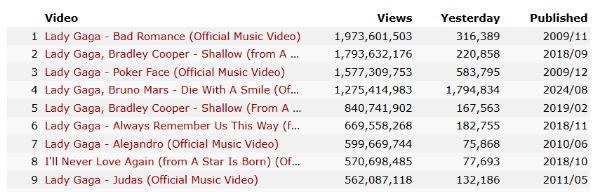 Трак който никога не е бил сингъл в момента прави повече от всички албуми на Бионсе. Риана вчера е била с повече дневни от Гага, която има свеж албум и гига хит с по 5-6М на ден. her power 🔥 -