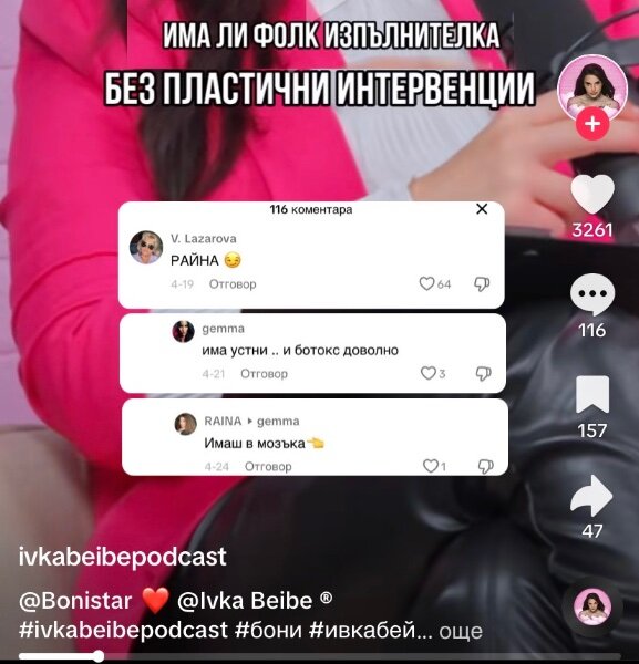 4. Не знам дали и липсва нещо, но ми писна да слушам песни за бавноразвиващи се тип по-по, па-па, Лола, кррр-тррр, чипи-чапа, пуши-пуши, щибиди-йес, топ-топ, кралици, бутлачи и какви ли не други. По-добре ли е да претопли чужд ретро хит, да се стреми към тик-ток трендове или да гепне актуално парче в съседна страна? Това е фолка в последната година-две. За 12 поредни години да нямаш един кавър не знам дали има аналог във фолка. И е похвално, че все експериментира и се опитва да разнообрази песните си. Виж с колко различни композитори пробва, защото се вслушва в исканията на слушателите.. Предпочитам песен с нещо недостигащо за масов хит, ако критериите за хит вече са такива.