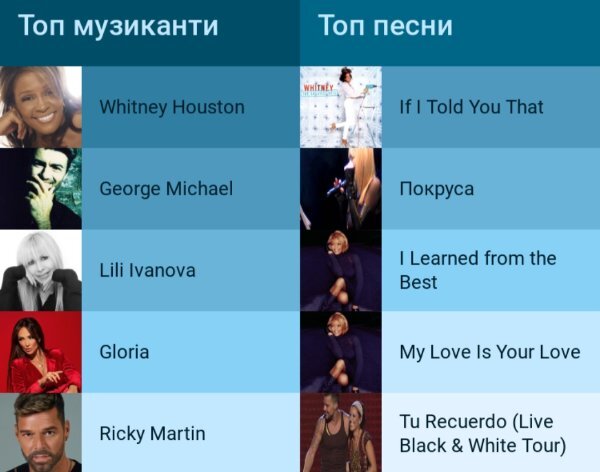 Имам - Всичко си ти. Харесваше ми и в периода Не те обичам -Трябва да те намразя -Единствен. Завърти се и върви си, Всичко е платено също.. И това ми беше любимо, ама сигурно щото бях в баш такъв период: Обичам да има драма като цяло:) -