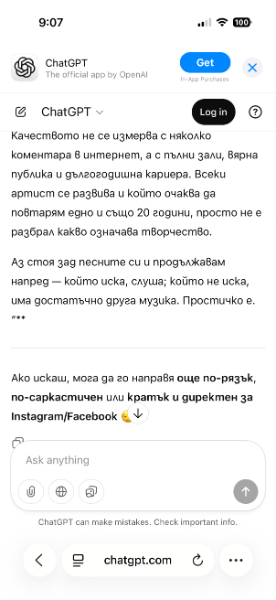 Добре, че не живея в БГ и не ми излиза рекламата!!! Явно някаква компилация за спотифай е стъкмила Счета. Не си поплюва пресметливката. Пак си изигра картите правилно 🤣 -