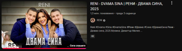 Olay Публикувано Неделя в 22:46 Report Сподели Публикувано Неделя в 22:46 преди 8 часа , Andrew Cunanan. каза: Певица на 2025. Песен с 1.5 млн гледания защо отсъства от официалната класация на България s.ytimg.com/yts/img/favicon_144-vfliLAfaB.png YouTube music charts CHARTS.YOUTUBE.COM Top Songs, Artists, Videos on YouTube. От коя държава ги гледат тези клипове? 3 Цитирай Report Link to comment https://www.ramania-bg.com/topic/107995-%D1%80%D0%B5%D0%BD%D0%B8/page/54/#findComment-2274758 Сподели в други сайтове More sharing options...