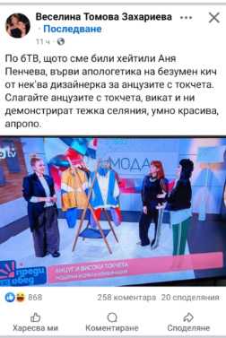 Andrew Cunanan. Публикувано Януари 17 Report Сподели 17 януари 2026 Освен това песента на Андреа е харесана от три и половина пъти повече хора от дуета на леля: Да не отварям дума за клиповете. Клипът на Андреа - колкото и да са я изрисували и тя да е на командно дишане по време на снимките, за да не лъсне истинското й тегло, е абсолютен топ за България. Клипът на леля е типичен чалга клип, от евтините, даже роклята на Гюр от вълк е присвоила, а с този комбинизон още обикаля по участия. Цитирай Report Link to comment https://www.ramania-bg.com/topic/107995-%D1%80%D0%B5%D0%BD%D0%B8/page/54/#findComment-2276213 Сподели в други сайтове More sharing options...