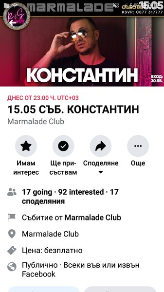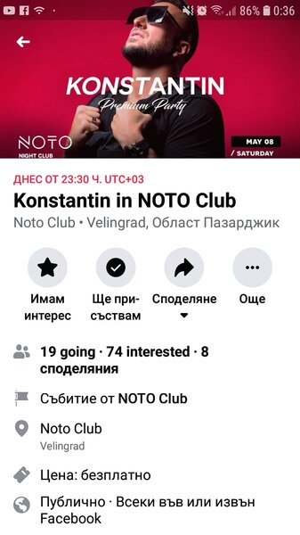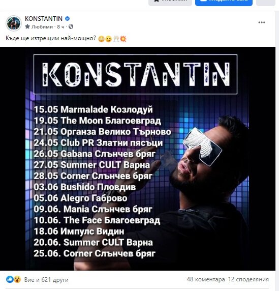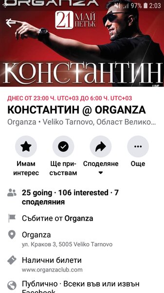 Guest Публикувано Май 22 Report Сподели Публикувано Май 22 Вчера е било фул във Велико Търново: https://www.facebook.com/organza.club/videos/1141471719598831 Следва почивка до 24 май. Цитирай Report Link to comment https://www.ramania-bg.com/topic/110996-%D0%BA%D0%BE%D0%BD%D1%81%D1%82%D0%B0%D0%BD%D1%82%D0%B8%D0%BD/page/36/#findComment-2075931 Сподели в други сайтове More sharing options...