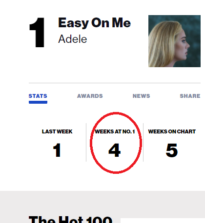 По - колко време са седели песните на Адел номер 1. И като добавим и останалия свят? Аз не я харесвам, просто виждам, че е феномен.