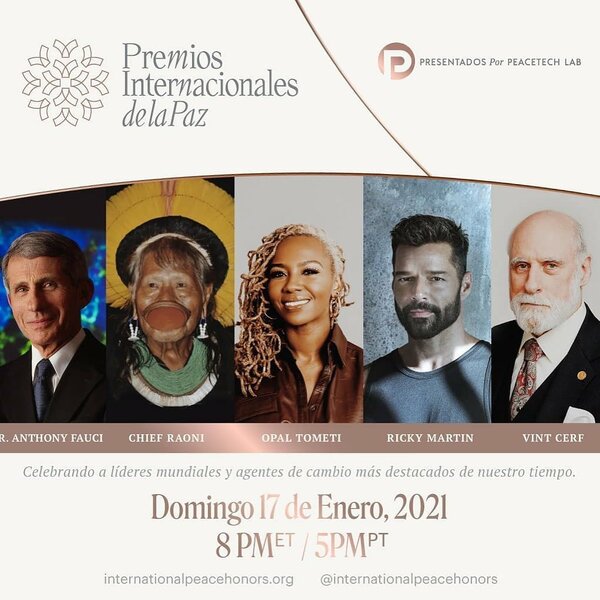 Международните награди за мир, които трябваше да бъдат днес и Рики Мартин да получи награда се отменят за 17 януари 2021: