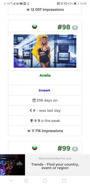Stela Публикувано Юни 28 Report Сподели Публикувано Юни 28 преди 18 часа , plambata каза: На "100 живота" как вървяха гледанията в първите 10 дни? Нека някой, който има достъп, да сподели. Лично за мен поддържането на повече от 200к при Праса е много, много странно. Лайковете и коментарите ѝ в същото време едва-едва се променят. Отделно не съм видял някой да я поства тая песен или да има макар и минимална истерия по нея. Как пък все при песните на Праса не се следва нормалната логика.... Ден 1 - 486 Ден 2 - 457 Ден 3 - 417 Ден 4 - 349 Ден 5 - 353 Ден 6 - 324 Ден 7 - 302 + 29 от фен клип Ден 8 - 279 + 19 Ден 9 - 270 + 20 Ден 10 - 279 + 22 За първите дни не знам колко е правил фен клипа, защото не беше добавен в нейбъла. Има 600К още от фен клипчета. 1 1 Report Link to comment Сподели в други сайтове More sharing options...