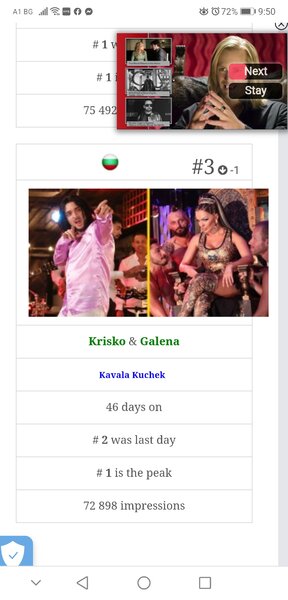 Slavi Публикувано Декември 15 Report Сподели Публикувано Декември 15 преди 3 часа , Moovit каза: А в такъв случай какво да кажем за "Беден в успеха", която на ден 46 е била топ 10-15? 😂 И не знам какво визираш под сриване, предвид, че кавъра на Даймънд точно до няколко дни и 75k на ден няма да прави, а разликата с мангала е 3к? Смешни сте... Разликата с Емилиано е цели 60ка като броим и другите 2 клипа на Татуировка. Защо се правиш на разсеян сякаш не съшествуват. Татуировка излезе след Кавала и вече е с повече гледания. Знам, че Галеновите ви боли, че мангала е с по голям хит, но е време да го приемете. Ако същия този мангал беше изпял Кавала, нямашв и да я чуете. Не знам защо се насилвате да слушате и харесвсте гнусни песни, само щото Галената пее в тях. Вманиачена работа... А бозата на Даймънд не заслужава и 3 дни да бъде под номер 1. Жалкарска история, за да видят хит... Защо ми даваш за сравнение Беден в сърцето. Тя също в посредствена, но разбира се е далеч по приятна и слушаема от недоразумението Кавала. Link to comment https://www.ramania-bg.com/topic/113459-%D0%BF%D0%BE%D0%BF-%D1%84%D0%BE%D0%BB%D0%BA-%D1%81%D0%BA%D0%B0%D0%BD%D0%B4%D0%B0%D0%BB%D0%B8/page/58/#findComment-2051334 Сподели в други сайтове More sharing options...