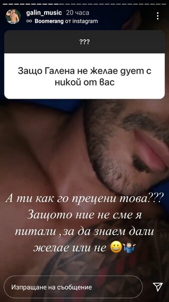 Blueberry Публикувано Август 1 Report Сподели Публикувано Август 1 Току що, BobiTo каза: "За любов ми говори, за разврат и за игри", това е припева. Галена нали направи коледното трио с Галин в този период, явно е нямала против да направи и дует с него, после вече е чула разни неща за себе си и го отритна тотално. О да, вярно. Галин изглеждаше много безопасна игла в тоя период, беше симпатичен и готин. После си повярва и почна да си демонстрира характера. 2017 му беше пикът в кариерата на Галин, това беше и първата година, в която безапелационно беше над Фики, който имаше само "Пате". От там нататък си повярва и почна да прави тъпни, има и само един хит - дуета с Лидия. Link to comment Сподели в други сайтове More sharing options...