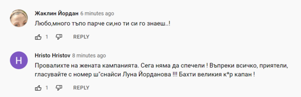 Не симпатизирам на Луна и ще си спестя коментара относно нивото й като политик или като цяло, но плюенето по някой, не ни прави по-умни….На никой ли не му направи вчеталение, че всъщност това наистина е целенасочено злепоставяне, за което тя всъщност си личи че не знае…нейна грешка, да…Обаче и Любомир и казва, че това няма да го качи, “окей” “добре” и не знам си какво още… което погледнато обективно си е чисто подвеждане и лъжа, сори….Не е готино просто…. И пак подчертавам, плюенето и подигравките към някой, не ни правят нито по-умни, нито по-добри…..