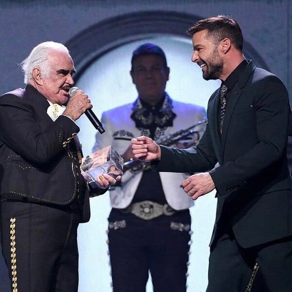 Починал е легендата големият мексикански певец Висенте Фернандес. В момента в Мексико само това предават. С Рики бяха приятели. Колко съм го гледала на латино награди Висенте: