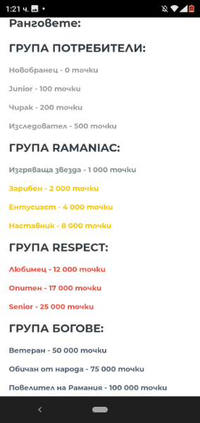 Brian Публикувано Януари 27 Report Сподели Публикувано Януари 27 Измислени рангове! А правомощия (екстри) никакви. За какво да се напъваме?! Измисли най накрая кой ранг какво получава. Стига брои само точките. 1 2 1 Цитирай Report Link to comment Сподели в други сайтове More sharing options...
