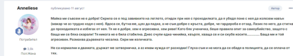 asylum Публикувано Юли 2 Report Сподели Публикувано Юли 2 преди 1 час, Fast каза: Че аз постоянно споря с някой за нещо. Но това не е просто обикновен спор. Покрай дългото му сталкване, всеки пъти когато се опита да ме захапе, ми докарва посттравматичен стрес и дори не се шегувам. Не бих искал постоянно да изпадам в подобни състояния. И да е спрял засега, това не означава че няма да почне отново, когато случаят малко отшумее. Поисках гаранции, които не ми бяха дадени. Аз нямам избор реално погледнато, освен сам да се дръпна, поне на този етап за да се самосъхраня, щом екипът не ми влиза в никаква помощ, а аз не желая саморазправа с него, нито вярвам че проблемът може да бъде разрешен по мирен начин без натиск. И никъде не съм казвал, че ще престана да пиша завинаги. Все някога ще поискам да ми бъдат върнати правата. Toecm ucka6 baH 3a uMaGuHepHu, xunomemu4Hu cumyazuu, koumo Moje bu HukoGa HqMa ga ce c/\y4am!? 😳 2 Report Link to comment https://www.ramania-bg.com/topic/115891-%D1%87%D0%B0%D1%82-%D0%BC%D0%B0%D0%BD%D0%B8%D1%8F-%D1%8E%D0%BB%D0%B8-%D0%B0%D0%B2%D0%B3%D1%83%D1%81%D1%82-%D1%81%D0%B5%D0%BF%D1%82%D0%B5%D0%BC%D0%B2%D1%80%D0%B8-2023/#findComment-2157229 Сподели в други сайтове More sharing options...