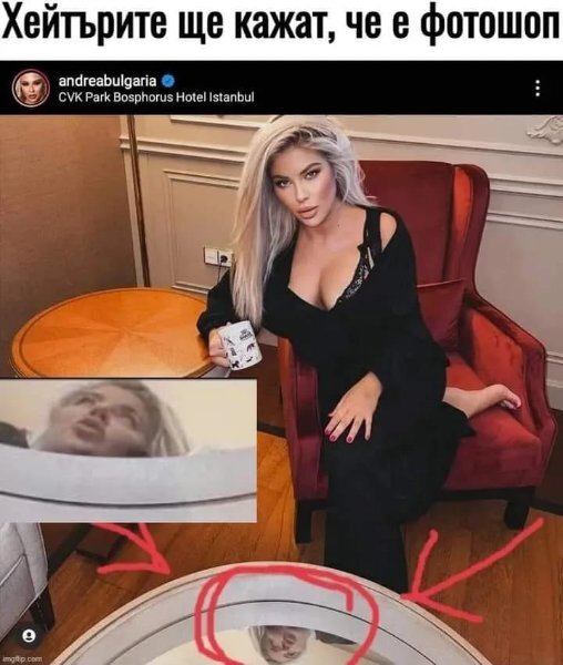 Lelqtian Публикувано Октомври 14 Report Сподели Публикувано Октомври 14 преди 1 час, Andrew Cunanan. каза: Разбира се че не е фотошоп, не е изкривила фотьойла, масата и цялата реалност. Просто е залепила ваденка от преди 15 години, да поздравим производителя за дълготрайното лепило! 3 Report Link to comment Сподели в други сайтове More sharing options...