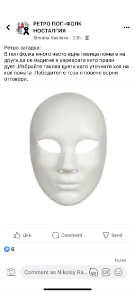 Lelqtian Публикувано Октомври 20 Report Сподели Публикувано Октомври 20 преди 3 часа , Gerganafen каза: 2024 май ше се окаже трудна за Гюрулту - не стига, че Преса заплашва и тя да направи концерт, а сега остава и Тройниците да напълнят преди нея някоя зала от НДК-то на културата. Не, че досега е направила кой знае какво, заради което човек да си каже "Я да си купя билет за концерта на Глория, ще си заслужава". Един приятен ретро дует с Дачева и дотам. Спасението е в някоя силна балада с изпипан клип + албум. Тройниците може да напълнят някой от клозетите в НДК. 4 Report Link to comment Сподели в други сайтове More sharing options...