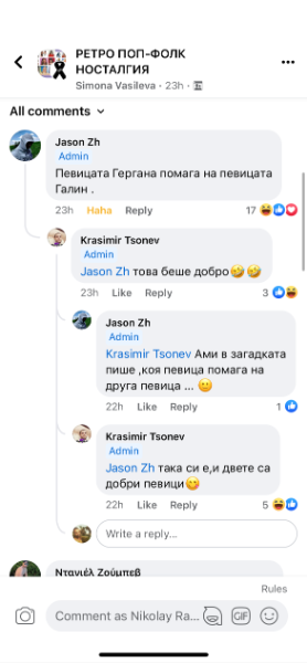 adorable Публикувано Октомври 20 Report Сподели Публикувано Октомври 20 преди 11 минути, Yamall каза: Преслава кога е осмивала някого? Тя си пуска меметата, които я забавляват и това е. Според теб една "звезда" трябва да е stone face и да се държи като Азис, все едно сме недосегаеми?! Тъпо е, човек трябва да има малко чувство за хумор и да бъде реалист, че не сме в САЩ и както пееш по сватби бос и крещиш на микрофона, така и ще те молят за поздрави на лично съобщение. Преслава е една подигравчийка... е питай ги тук, много често са пускали сторита, в които се гаври с хора, ситуации и т.н. - онова в самолета примерно, а иначе и по брадъра и къде ли не се прави цял живот на божа кравичка. Айде нЕма нужда. Никъде не казах, че който и да е трябва да е като Азис. Но да се забавляваш на чужд гръб, и то прикрито и индиректно, не е ок също. Точно Преслава не е пример за нищо. Тя и с Галена така се гавреше по време на награди, където се правеше, че плаче "какво съм ви дала толкова" и не знам си какво... Актриса си е. Тя и тя като Галин за перални си мечтаеше и за не знам какво... после видяхме... Те много скромни от тоя Добрич, бе. Самата свенливост и морал. Че не реагира на това с Бирмата също беше тъпо, после наскоро се гавреше с "Кажи, здравей". 3 Report Link to comment Сподели в други сайтове More sharing options...
