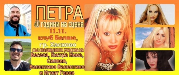asylum Публикувано Октомври 23 Report Сподели Публикувано Октомври 23 Petra Atanasova - Специални гости:- Екстра Нина, Силвия,... WWW.FACEBOOK.COM Специални гости:- Екстра Нина, Силвия, Весела, Валентино Валентино, Игнат Генев и др. Очакваме ви!❤️ 3 Report Link to comment Сподели в други сайтове More sharing options...