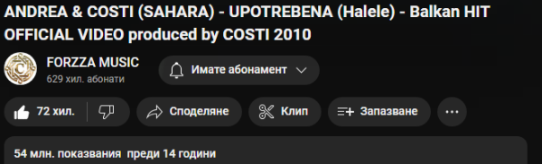 Mastikata Публикувано Декември 13 Author Report Сподели Публикувано Декември 13 преди 5 минути, Willy каза: Това ли са най-гледаните клипове изцяло на български? Добавете ако пропускам нещо! 1. Сен тропе - 146М 2. Хабиби - 113М 3. Мотел - 96М 4. Напрао ги убивам - 57М 5. Гледай как се прави - 52М 6. ВНЛ - 51М 7. Евала - 44М 8. Не сме безгрешни - 43М 9. За приятели на маса - 42М 10. Жено бягай - 42M Жено бягай пак ли е на Азис? Защото ако е така, 7 от 10 са негови. Гадост! 1 Report Link to comment https://www.ramania-bg.com/topic/116279-%D0%BF%D0%BE%D0%BF-%D1%84%D0%BE%D0%BB%D0%BA-%D1%81%D0%BA%D0%B0%D0%BD%D0%B4%D0%B0%D0%BB%D0%B8-%D0%B4%D0%B5%D0%BA%D0%B5%D0%BC%D0%B2%D1%80%D0%B8-2023/page/53/#findComment-2173657 Сподели в други сайтове More sharing options...
