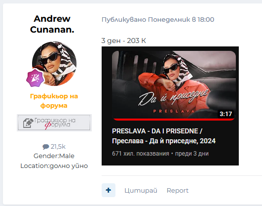 asylum Публикувано Април 17 Report Сподели Публикувано Април 17 преди 1 час, BobiTo каза: Слушаме ли хитове? Cynep xum e BepHo! Ho ge e MoM4u/\? 🤣Mu Hemu? 1 Report Link to comment Сподели в други сайтове More sharing options...