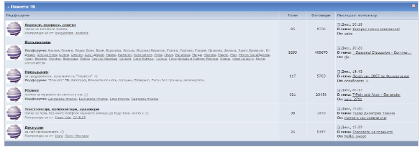 Fast Публикувано Април 21 Report Сподели Публикувано Април 21 преди 2 минути, meleto каза: Сега разгледах, наистина показвало 5 потребители, но според мен нещо не е коректно. Форум на телевизия "Планета" WEB.ARCHIVE.ORG Някъде през есента на 2007ма са го пенсионирали. Мислех, че това се е случило 2005та Е не говорех буквално. 1 Report Link to comment Сподели в други сайтове More sharing options...