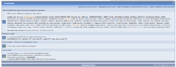 KrasyoZlobarQ Публикувано Април 21 Report Сподели Публикувано Април 21 преди 1 минута, Fast каза: Е не говорех буквално. Разгледах до 2005-6 и наистина снапшотовете са с по 5 потребители. Не знам как и защо са такива. Освен да е имало някакво ограничение на достъпа. Но както виждаш от 2007ма, наистина са така както помня. По 250-1000 души (повечето снапшотове са правени през нощта или обед-следобед). И помня, че много се триеха постове и теми и въпреки това е имало почти 1 милион коментара. 2 Report Link to comment Сподели в други сайтове More sharing options...