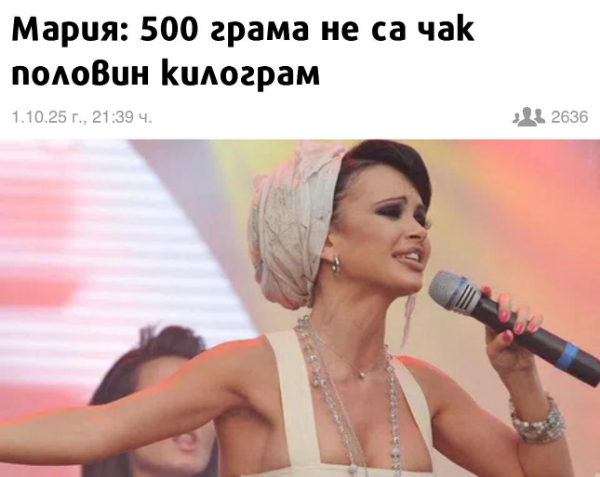 Runevski Публикувано преди 8 часа Report Сподели Публикувано преди 8 часа преди 35 минути, asylum каза: Всички чалгарки бяха на плейбек в Шоуто на Слави, не е била само Кати в нейното гостуване през 2002г. Няколко години по-късно почнаха на живо, но май само Тони ни Дачена си спомням да изви гласец. Глупости, далеч не бяха всички. Рени е била гост в Шоуто на Слави три пъти и винаги е била на живо. Била е и преди Кати, и пак е пяла - 2001г. пее даже 3 песни с бенда на живо. Катя просто не може да пее. 1 Цитирай Report Link to comment Сподели в други сайтове More sharing options...
